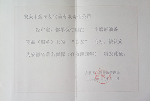 公司成立以来,每年被消费者协会评为诚信单位,是安庆市老干部用油指定生产厂家。公司荣获“安庆农业产业化市级龙头企业”、“安庆名牌”、“安庆市优秀质量管理奖”、“安庆市知名商标”、“安徽省著名商标”等多项荣誉。50年以来,公司一直从事着粮油食品的生产经营,其“良友”牌纯芝麻油是皖西南长江流域知名产品。